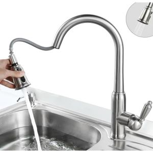 Choisissez évier et mitigeurs pour votre cuisine équipée : Mitigeur de cuisine avec douchette extractible, de qualité professionnelle. Mitigeur d'évier conçu avec une ligne moderne et épurée.